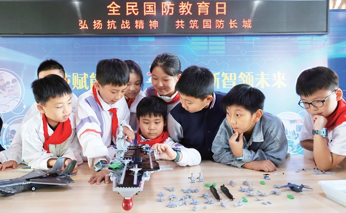 9月20日是第25個(gè)“全民國(guó)防教育日”。當(dāng)天,連云港市海州區(qū)大慶路小學(xué)科技館開展全民國(guó)防教育日主題活動(dòng),學(xué)生們搭建和組裝福建艦、運(yùn)油-20空中加油機(jī)、東風(fēng)-41洲際戰(zhàn)略核導(dǎo)彈、殲-35戰(zhàn)斗機(jī)、長(zhǎng)劍-100巡航導(dǎo)彈等科技模型,在動(dòng)手實(shí)踐中增強(qiáng)國(guó)防觀念,掌握基本國(guó)防知識(shí),激發(fā)愛(ài)國(guó)熱情。