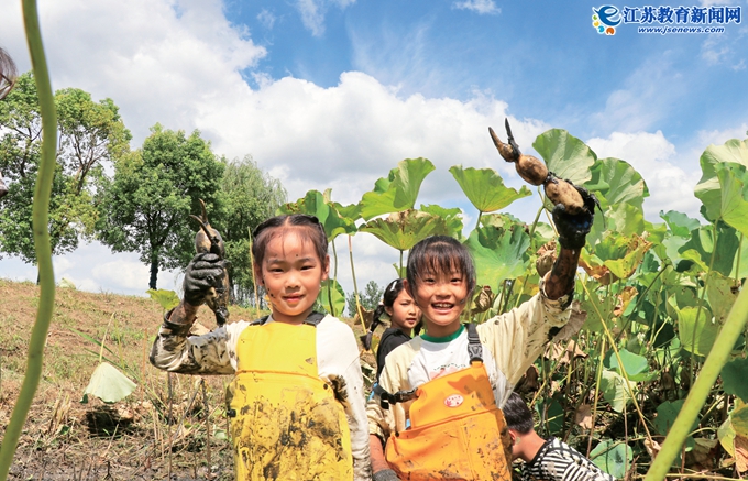 9月21日,東臺(tái)市實(shí)驗(yàn)小學(xué)在校外勞動(dòng)實(shí)踐基地開展田間課堂活動(dòng)。學(xué)生們身穿防水褲下塘采藕,體驗(yàn)藕農(nóng)勞動(dòng)的艱辛,感受荷塘豐收的喜悅。